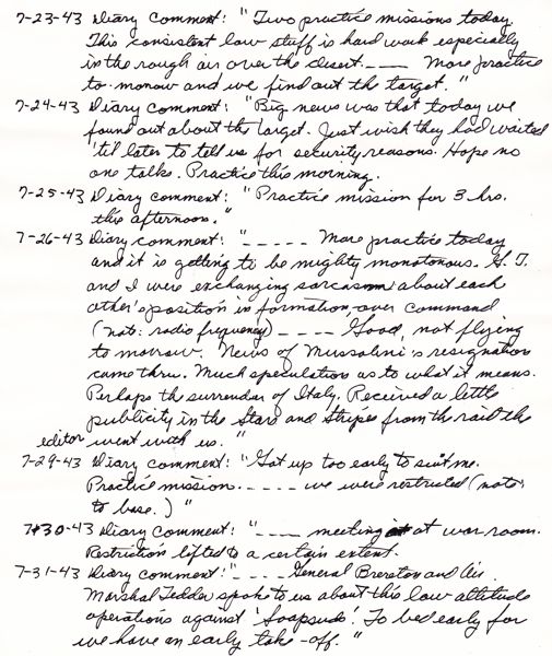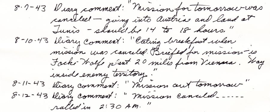 August 1, 1943 - Holt was on the mission, but submitted no notes on it.