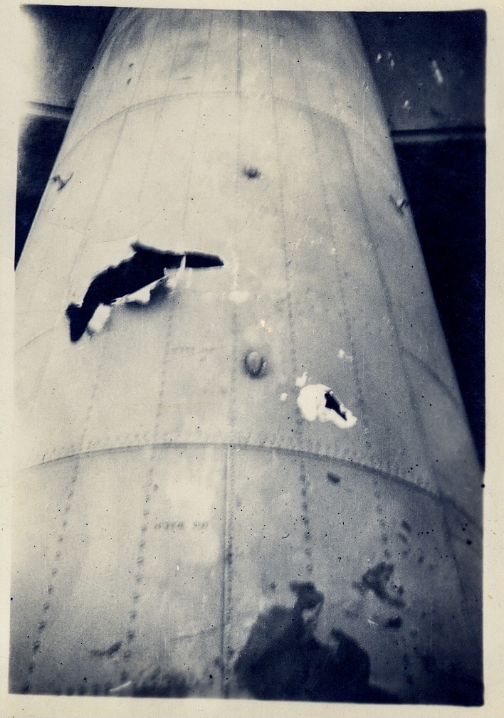 Photo 1 shows the battle damage to 42-40081, which forced the crew to divert to Malta on Jul 8, 1943.