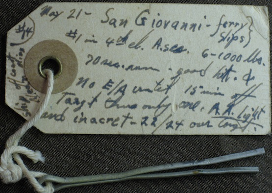 May 21 we hit San Giovani ferry slips. Had six 1000 lb. bombs and laid them in pretty good. Only one fighter seen and very little A/A.