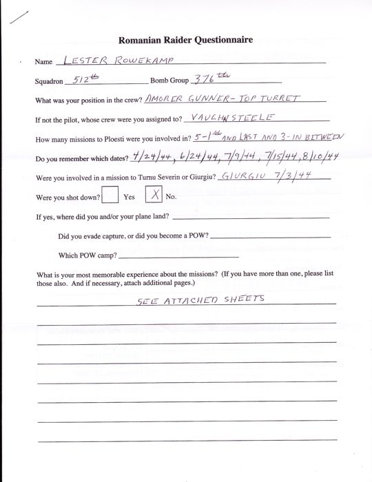Lester L. Rowekamp was a gunner on Vaughn Steele's crew.