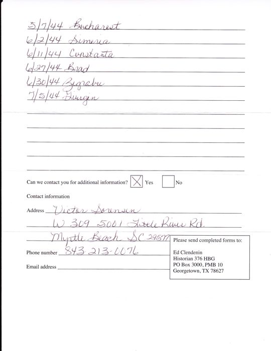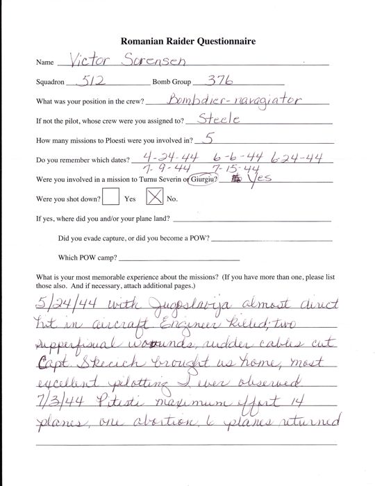 Victor Sorensen was the bombardier/navigator on the Vaughn Steele crew.