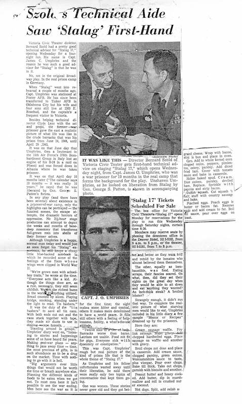 James was a POW. After the war, he was a technical advisor to the production of Stalag 17. This is the news clipping of that experience: